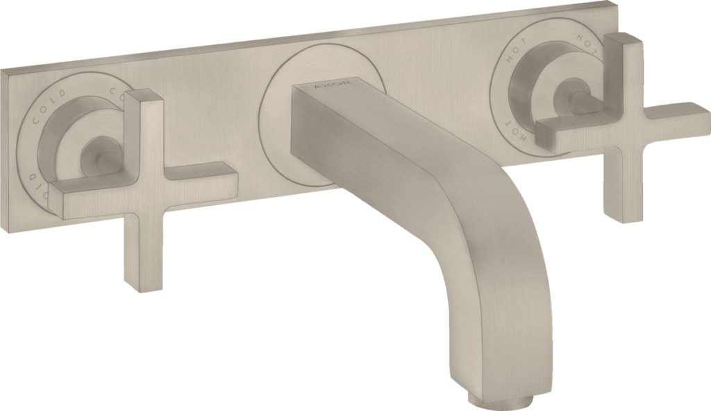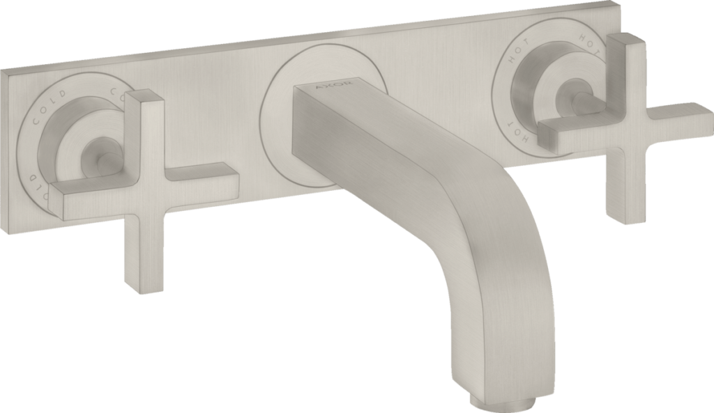 The AXOR Citterio 3-hole basin mixer features a sleek and minimalist design, characterized by clean lines and a timeless silhouette. Its innovative Cross handles design adds a touch of avant-garde elegance, creating a striking focal point in any bathroom setting.