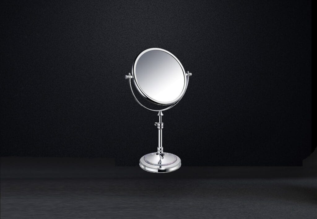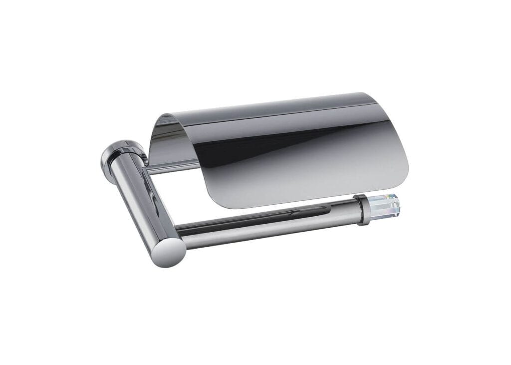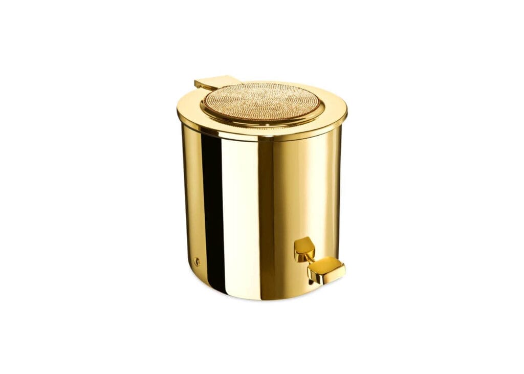 Solid brass bath bin available covered with hand placed Swarvoski crystals for an elegant appearance. Available finishes: chrome and 24 karat gold plate.