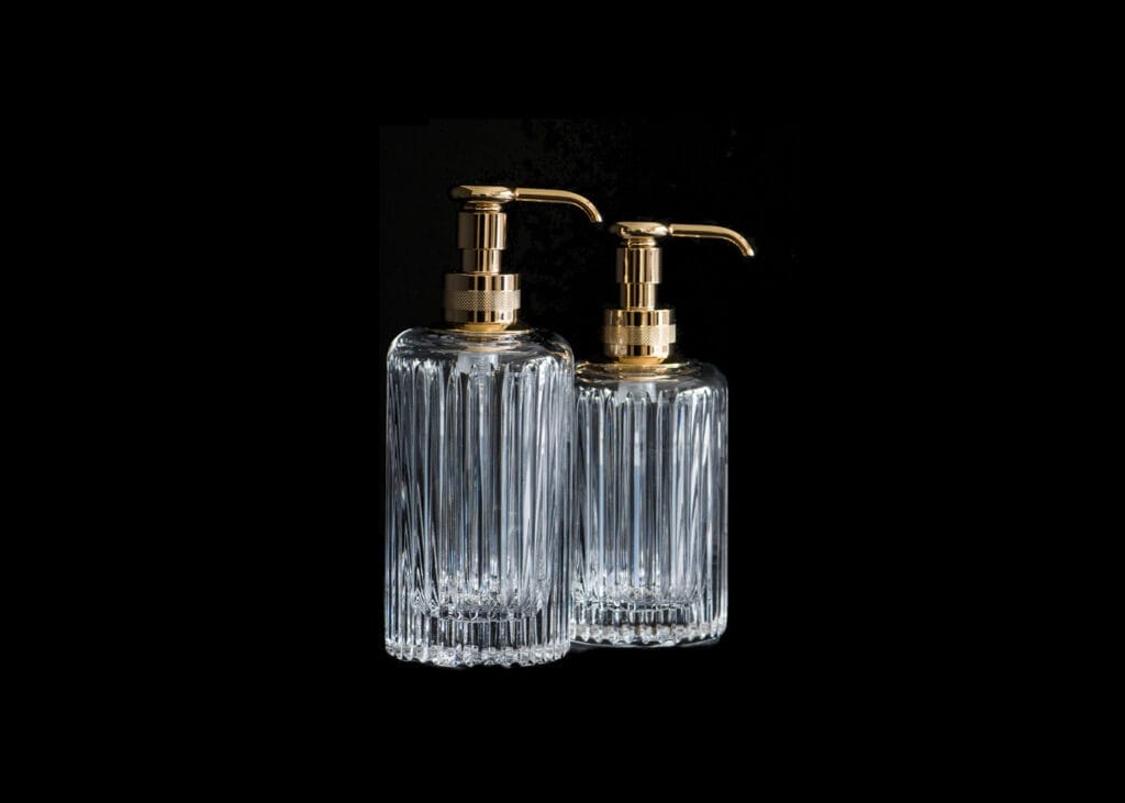A guaranteed favourite and bathroom essential, this intricately crafted crystal soap dispenser boasts a contrasting 24-karat gold-plated pump fully customisable to your taste, offering other bespoke finishes for striking detail and a glamorous feel.