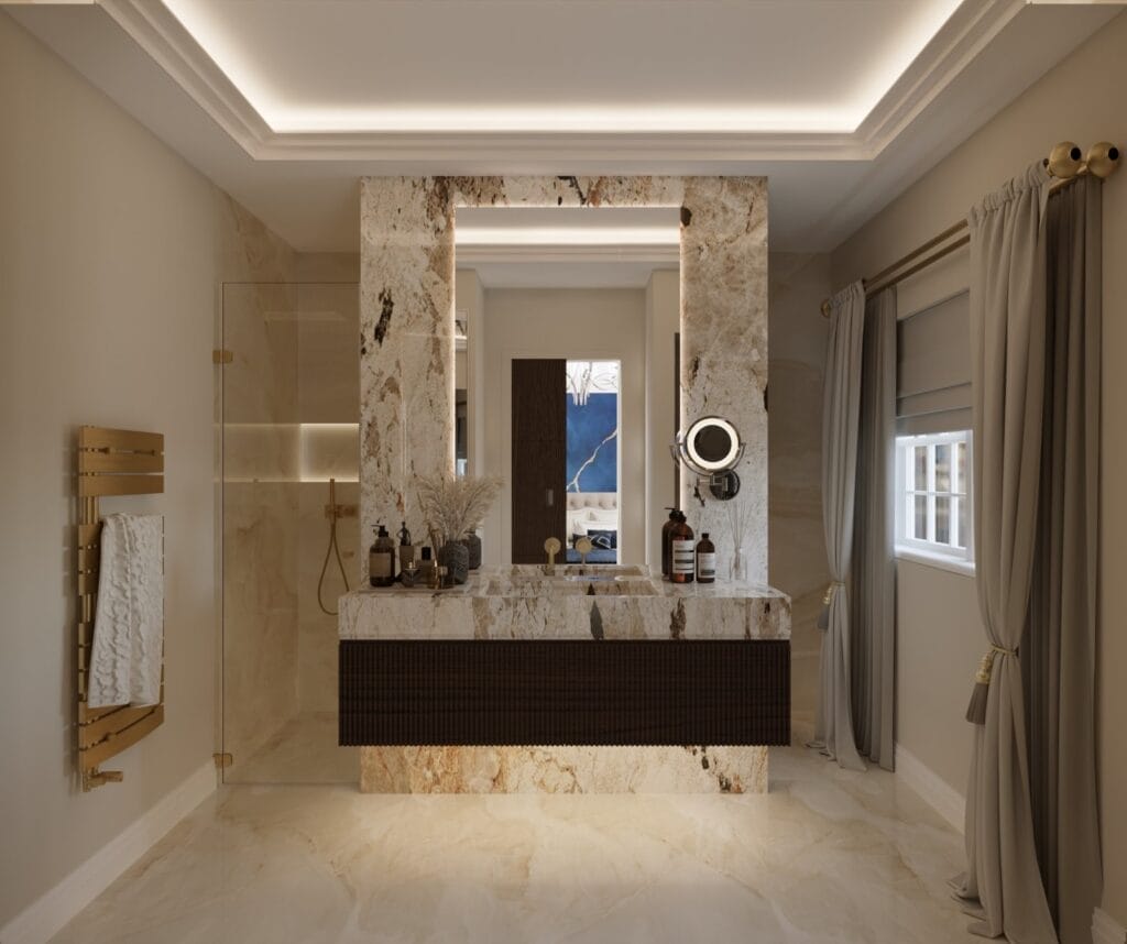 A Contemporary Masterpiece: Bathroom Design Blending Natural Stone and Tailored Craftsmanship